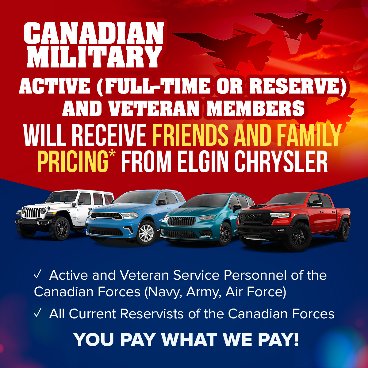 That’s why we’re pleased to share that Stellantis Canada has expanded its Preferred Pricing Program to now include Canadian Military Members and First Responders, effective October 2025.